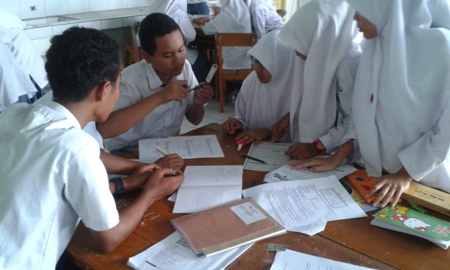 - Fase 2 Mengorganisasikan siswa belajar. Pada tahap ini dikelompokan menjadi beberapa kelompok yang beranggotakan 5 orang dan diminta berdiskusi dalam kelompok untuk menyelesaikan masalah di dalam LKPD