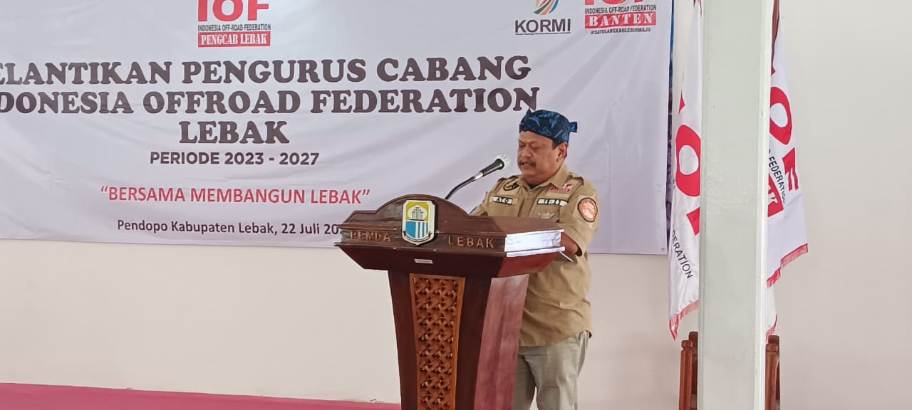CCN, Lebak. Budi Susanto, Sekretaris Daerah Kabupaten Lebak, resmi dilantik sebagai Ketua Indonesia Offroad Federation (IOF) Pengurus Cabang (Pengcab) Lebak pada Sabtu (22/7/2023).