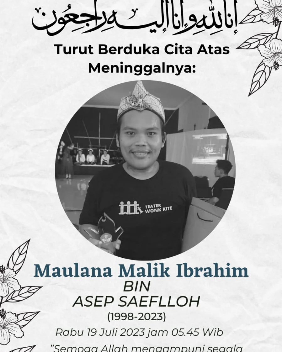 Kabar duka ini diberitahukan oleh pihak keluarga melalui Whatsapp dan disebarkan ke segala saudara dan kerabat. Fajrin Alwi selaku Presiden Teater Wonk Kite. Putra Ketua Komite Madrasah Aliyah Negeri (MAN) 1 Cilegon Asep Saefulloh, S.Ag., M. Si Maulana Malik Ibrahim, telah pulang ke rahmatullah pada Rabu pukul 05.45 WIB (19/07/2023).