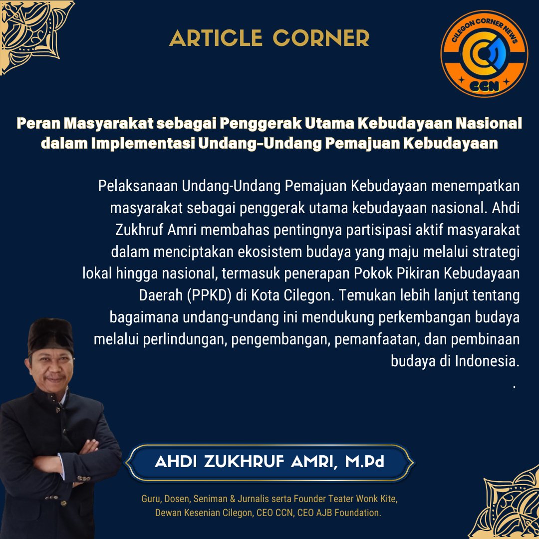 Peran Masyarakat sebagai Penggerak Utama Kebudayaan Nasional dalam Implementasi Undang-Undang Pemajuan Kebudayaan oleh Ahdi Zukhruf Amri