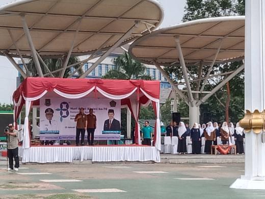 Walikota Cilegon, Heldi Agustian sebagai Pembina Upacara, mengajak meningkatkan semangat pengabdian. Heldi Agustian juga membacakan sambutan Menteri Agama.