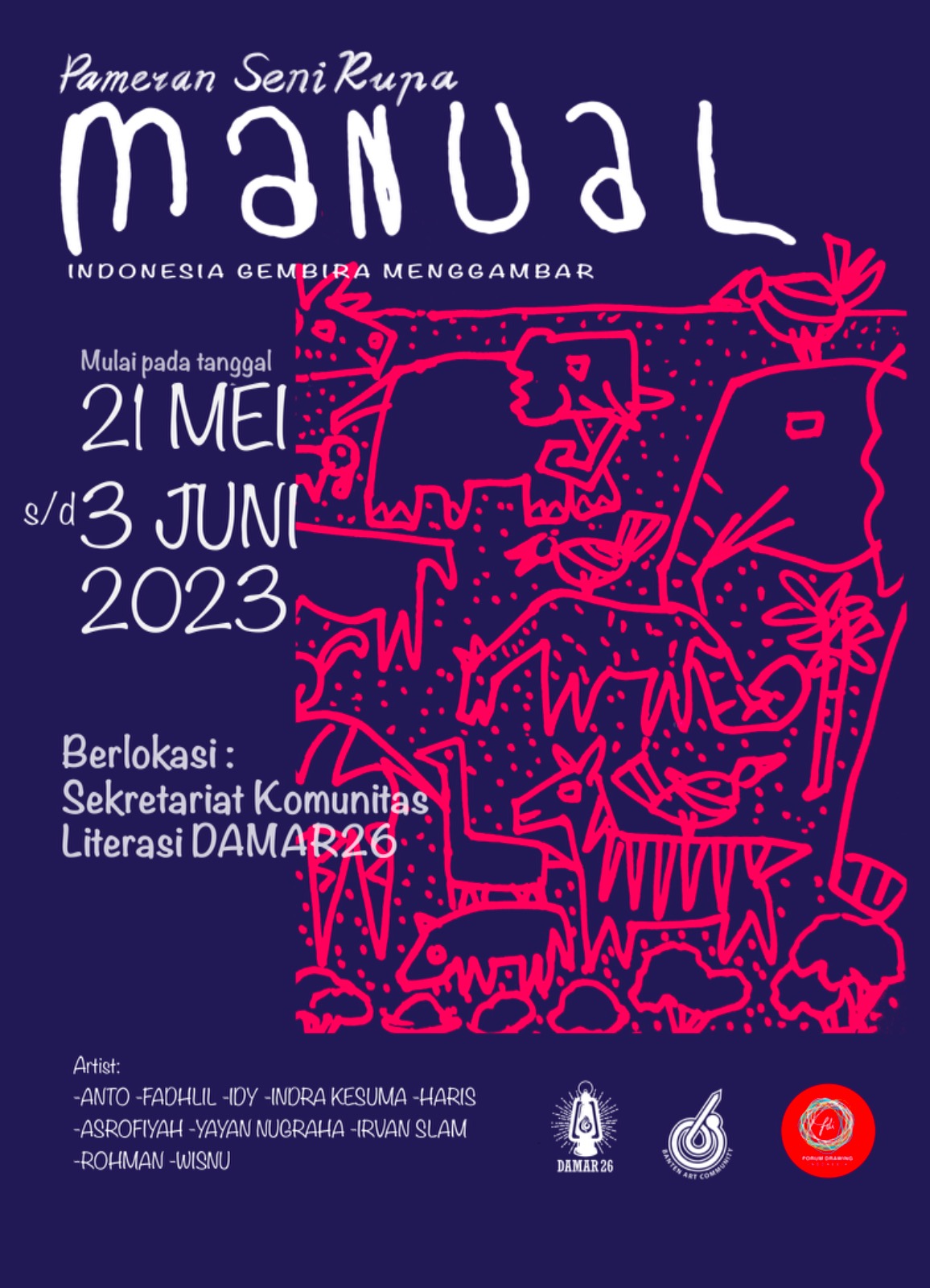 Untuk mempertahankan dalam penciptaan karya seni menggunakan ketrerampilan tangan maka di hari menggambar nasional ini beberapa perupa Banten yang tergabung dalam Banten Art Community (BAC) bekerjasama dengan Komunitas Literasi Damar 26, mengadakan pameran seni rupa dengan tema ‘ MANUAL ’ yang berarti pekerjaan menggunakan keterampilan tangan. Perupa yang terlibat dalam pameran ini antara lain : Anto, Fadhlil, Idy, Indra Kesuma, Haris, Asrofiah, Yayan Nugraha, Irfan Slam, Rohman, Wisnu. Kegiatan ini berlangsung dari tanggal 21 Mei 2023 sampai 03 Juni 2023 bertempat di Sekretariat Komunitas Literasi Damar 26 Cilegon.