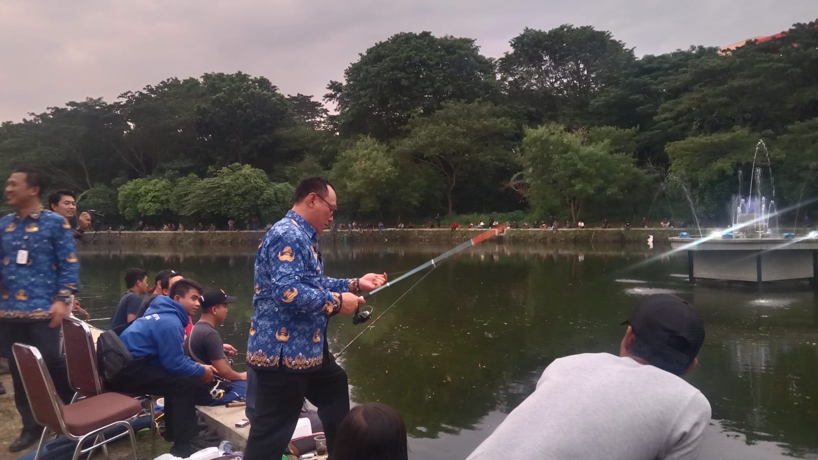 The arrival of the Mayor of Cilegon, Heldy Agustian, immediately spread 50 kg of catfish, adding to the enthusiasm of the community in fishing together on the Cilegon Government lake.